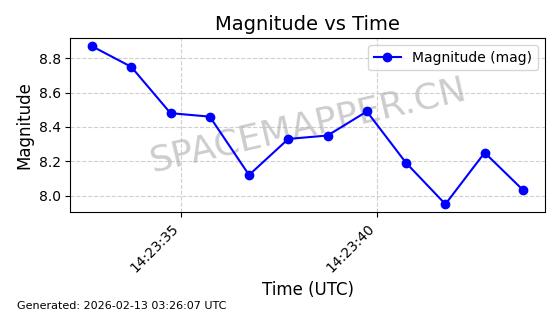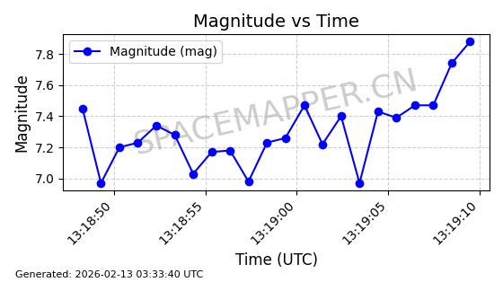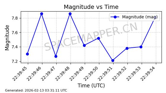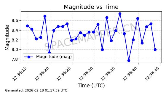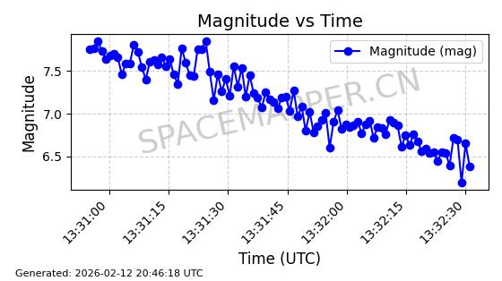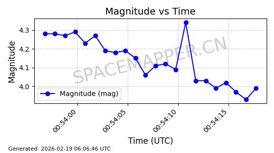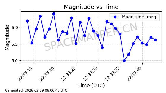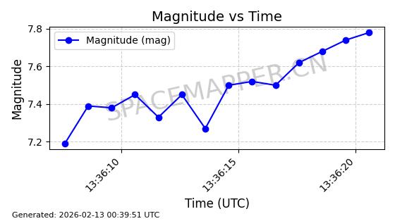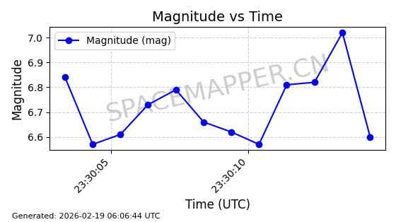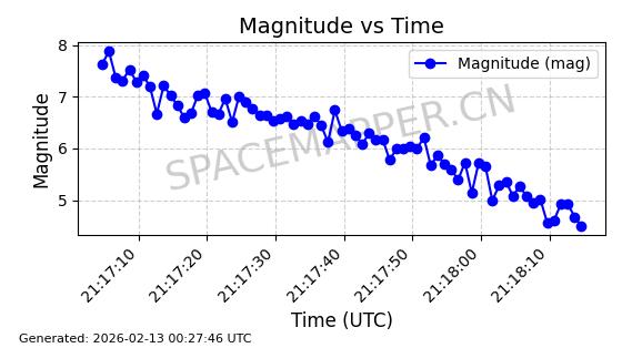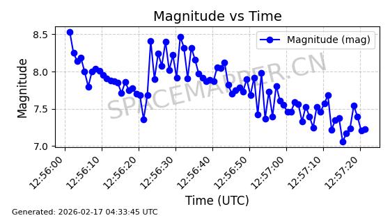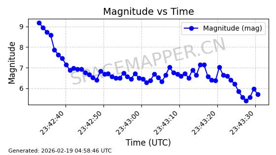 | STARLINK-30085 | 56709 | 56709 | 2023-05-19 同日期轨道 2023-067X 同批次轨道 | 在轨 | 95分钟 | 43.0007 | 537.891 | 540.191 | 0.0001662 | 2026-02-18 06:00:02 | ||
