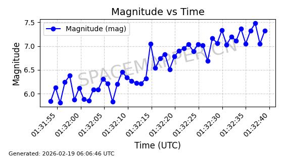 | STARLINK-6060 | 56794 | 56794 | 2023-05-31 同日期轨道 2023-078AD 同批次轨道 | 在轨 | 96分钟 | 70.0012 | 570.049 | 574.061 | 0.0002885 | 2026-02-18 06:14:27 | ||
