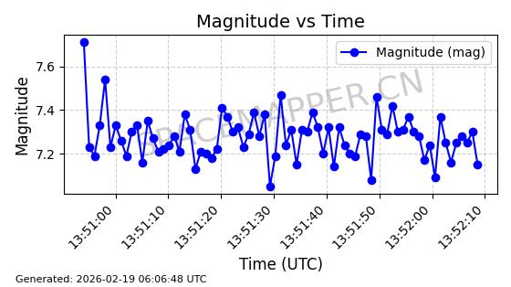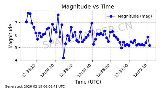 | STARLINK-6064 | 56805 | 56805 | 2023-05-31 同日期轨道 2023-078AQ 同批次轨道 | 在轨 | 96分钟 | 70.0011 | 569.932 | 574.12 | 0.0003012 | 2026-02-18 06:08:25 | ||