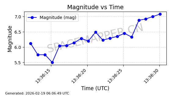 | STARLINK-6187 | 56546 | 56546 | 2023-05-14 同日期轨道 2023-065AV 同批次轨道 | 在轨 | 96分钟 | 43.0047 | 558.145 | 560.021 | 0.0001351 | 2026-02-18 04:45:57 | ||