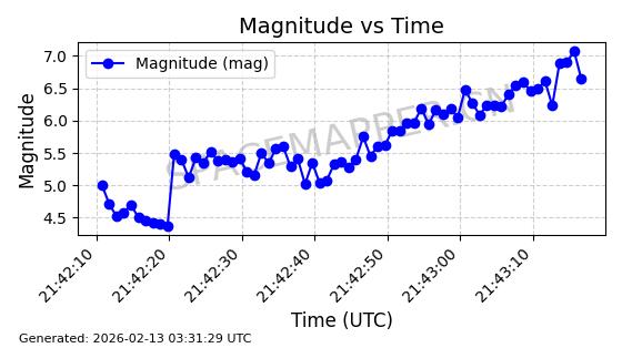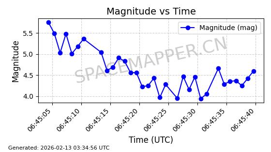 | STARLINK-30071 | 56708 | 56708 | 2023-05-19 同日期轨道 2023-067W 同批次轨道 | 在轨 | 96分钟 | 43.0051 | 558.066 | 560.042 | 0.0001423 | 2026-02-18 06:50:19 | ||