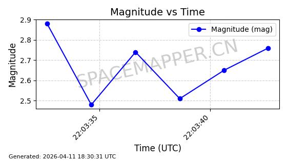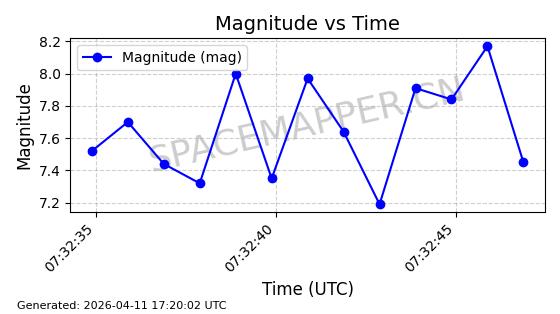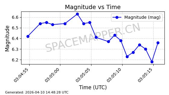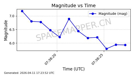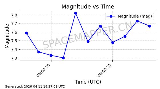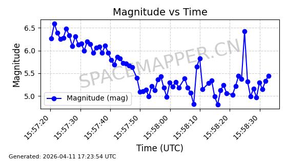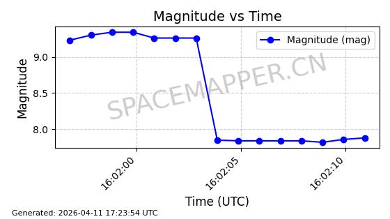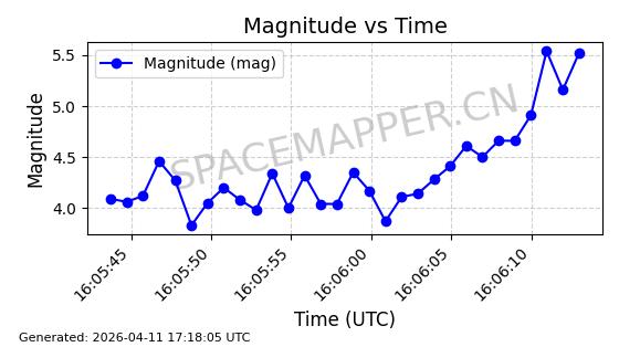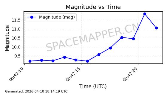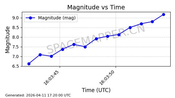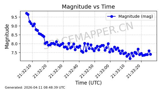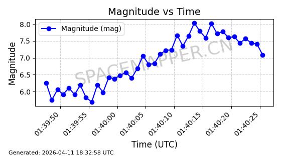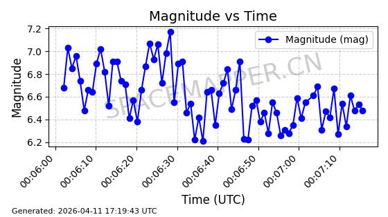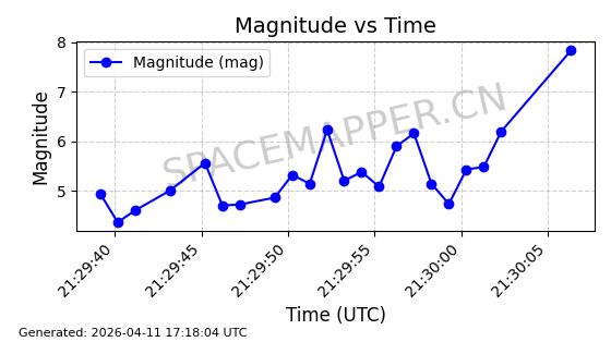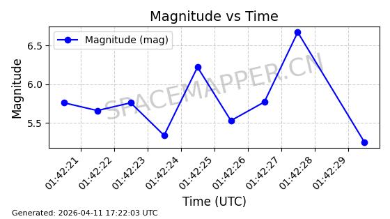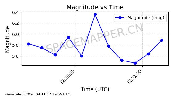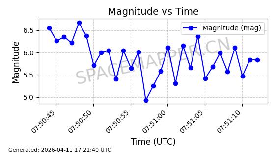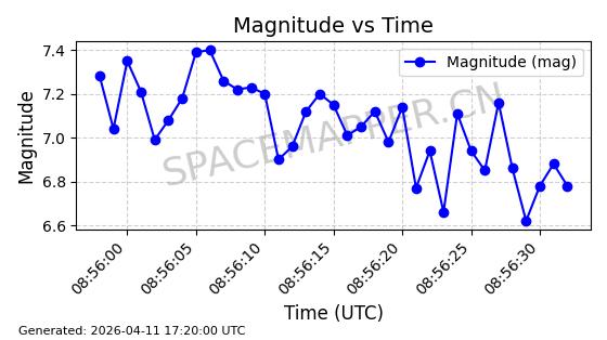| STARLINK-3897 | 52537 | 52537 | 2022-05-13 同日期轨道 2022-051E 同批次轨道 | 在轨 | 95分钟 | 53.2185 | 538.771 | 540.707 | 0.0001399 | 2026-04-11 01:49:00 | ||