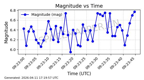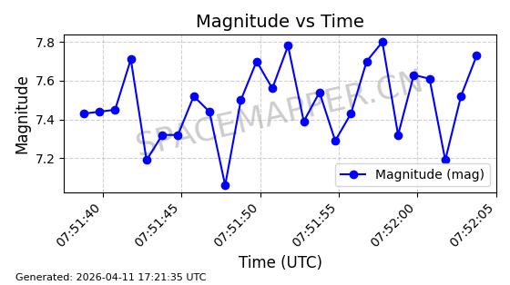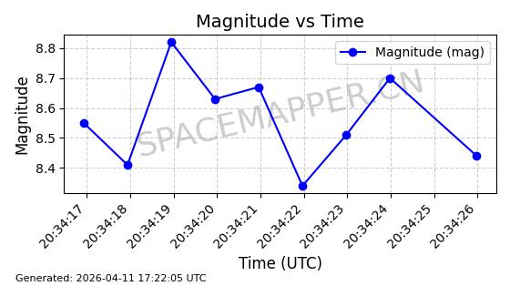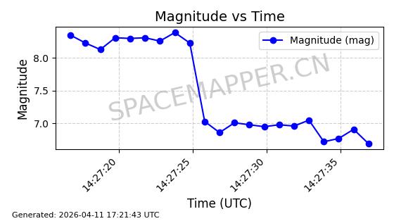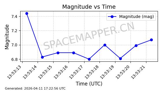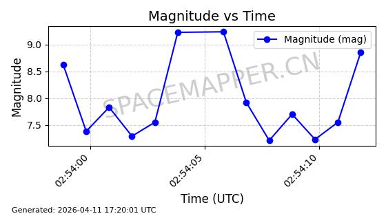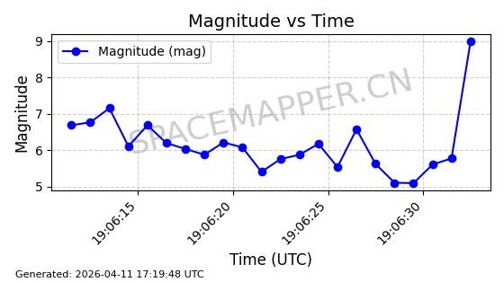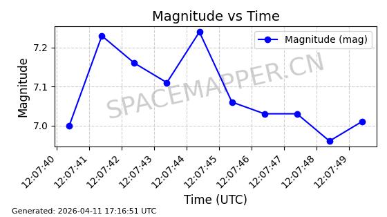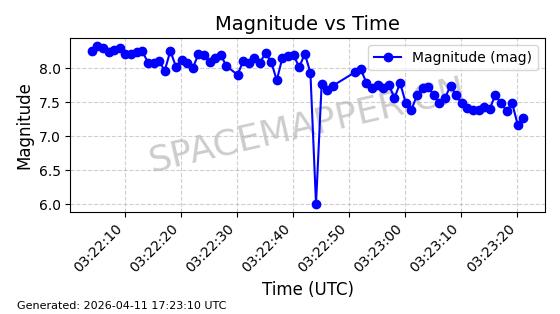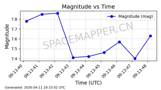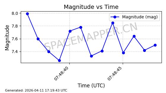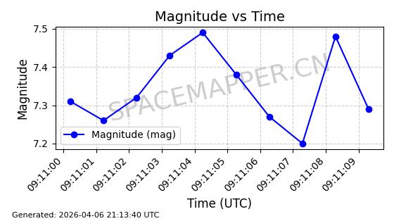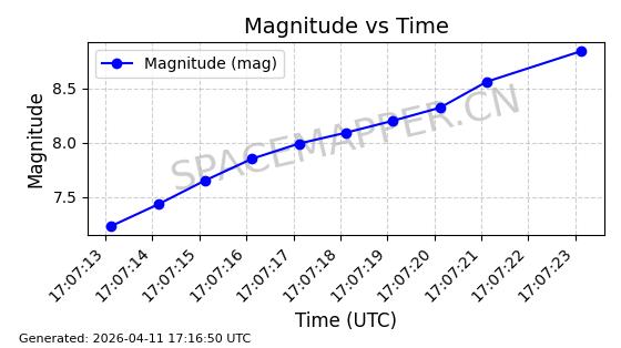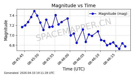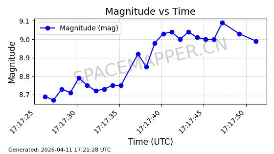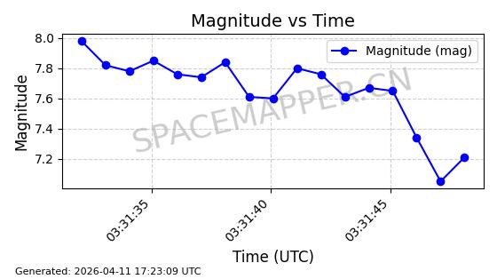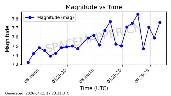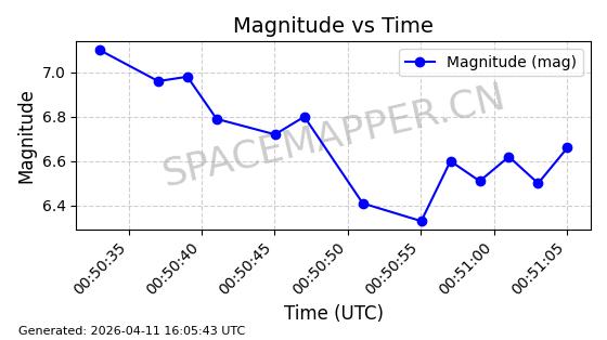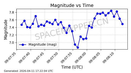 | STARLINK-3897 | 52537 | 52537 | 2022-05-13 同日期轨道 2022-051E 同批次轨道 | 在轨 | 95分钟 | 53.2185 | 538.771 | 540.707 | 0.0001399 | 2026-04-11 01:49:00 | ||