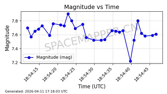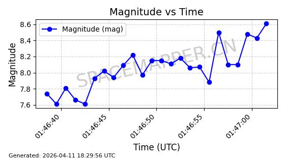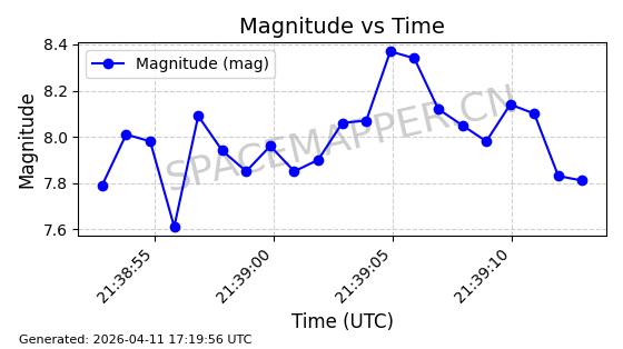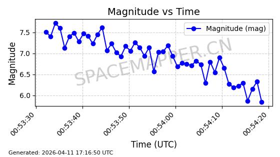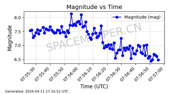 | STARLINK-3901 | 52574 | 52574 | 2022-05-13 同日期轨道 2022-051AQ 同批次轨道 | 在轨 | 95分钟 | 53.2183 | 538.869 | 540.611 | 0.0001258 | 2026-04-11 00:30:53 | ||