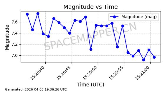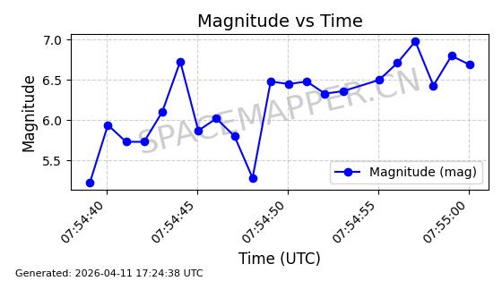 | STARLINK-3888 | 52454 | 52454 | 2022-05-06 同日期轨道 2022-049D 同批次轨道 | 在轨 | 95分钟 | 53.2170 | 538.869 | 540.647 | 0.0001285 | 2026-04-11 05:34:15 | ||