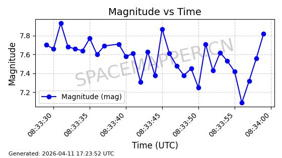 | STARLINK-3887 | 52484 | 52484 | 2022-05-06 同日期轨道 2022-049AK 同批次轨道 | 在轨 | 95分钟 | 53.2167 | 538.883 | 540.613 | 0.0001249 | 2026-04-11 05:09:05 | ||