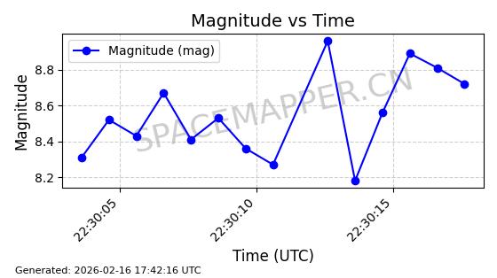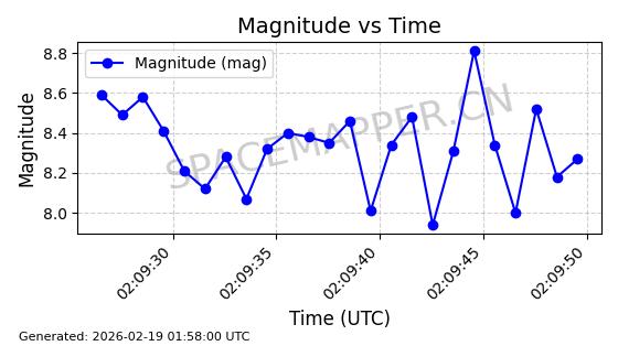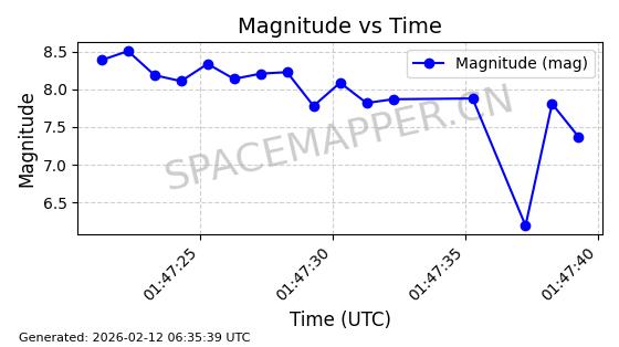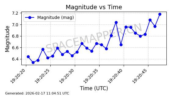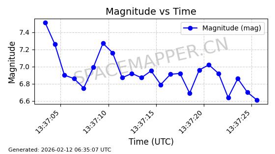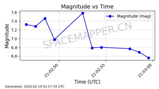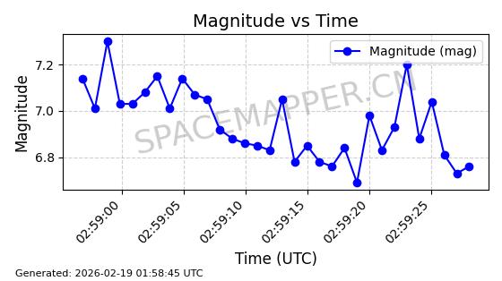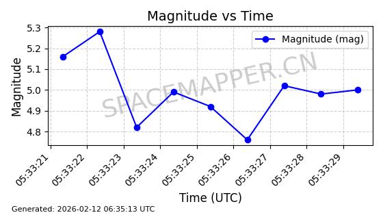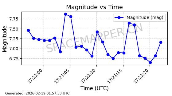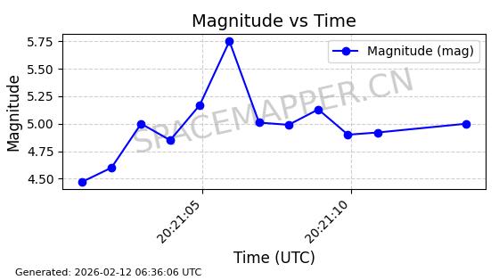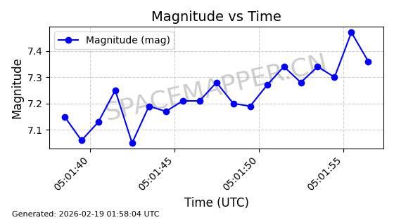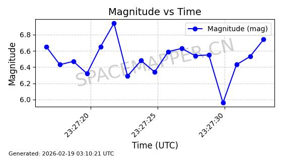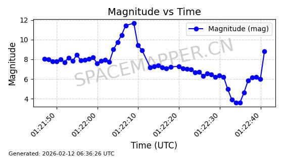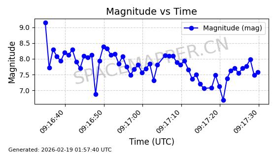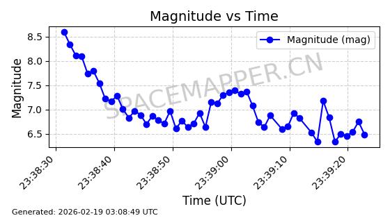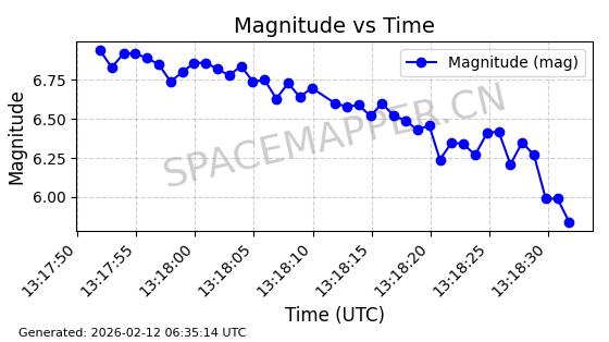 | STARLINK-30211 | 57304 | 57304 | 2023-07-10 同日期轨道 2023-096Q 同批次轨道 | 已陨落 | 88分钟 | 42.9779 | 179.698 | 217.02 | 0.0028374 | 2025-06-28 20:45:36 | ||
