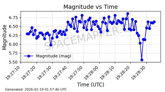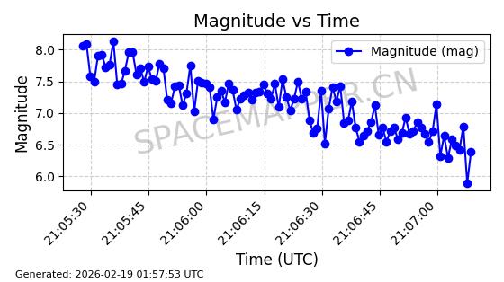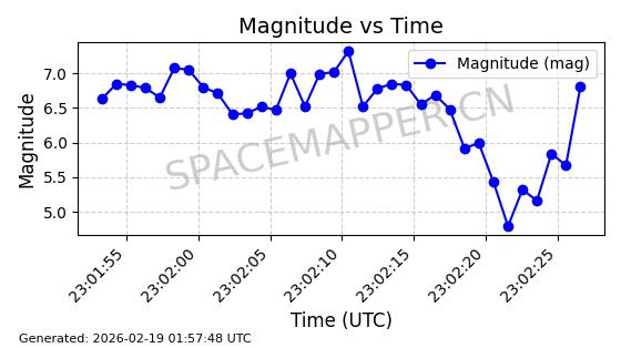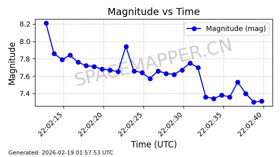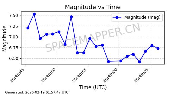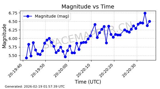 | STARLINK-30191 | 57413 | 57413 | 2023-07-20 同日期轨道 2023-102K 同批次轨道 | 在轨 | 94分钟 | 43.0007 | 482.394 | 483.772 | 0.0001003 | 2026-02-18 01:07:57 | ||