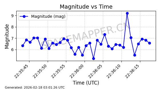| STARLINK-5026 | 57260 | 57260 | 2023-07-07 同日期轨道 2023-094AU 同批次轨道 | 在轨 | 96分钟 | 43.0018 | 558.047 | 560.097 | 0.0001477 | 2026-02-18 05:19:22 | ||