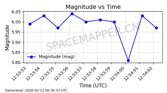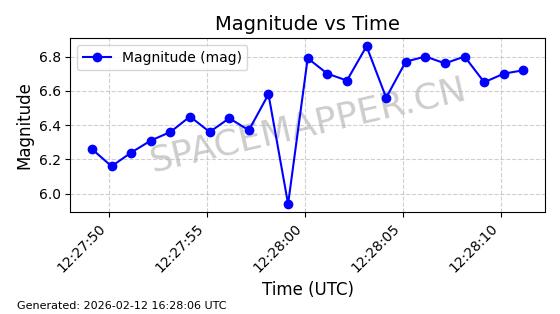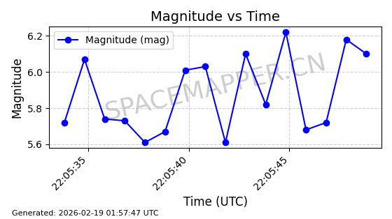 | STARLINK-6375 | 57342 | 57342 | 2023-07-16 同日期轨道 2023-099Q 同批次轨道 | 在轨 | 96分钟 | 43.0062 | 558.084 | 560.052 | 0.0001417 | 2026-02-18 05:37:44 | ||