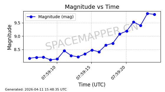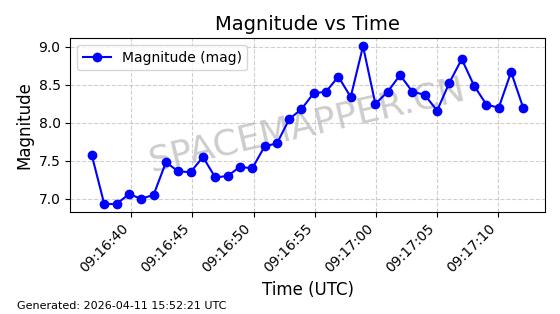 | STARLINK-4059 | 53250 | 53250 | 2022-07-24 同日期轨道 2022-086J 同批次轨道 | 在轨 | 95分钟 | 53.2175 | 538.792 | 540.71 | 0.0001385 | 2026-04-10 04:15:23 | ||