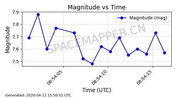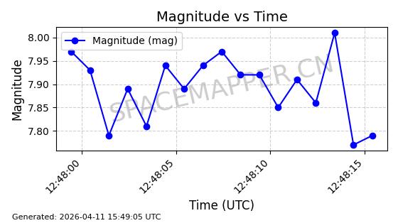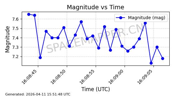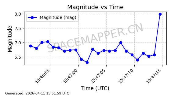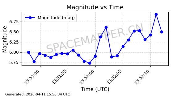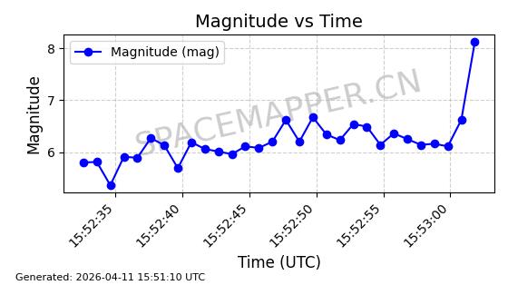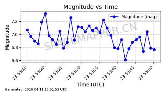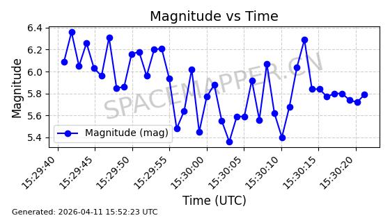 | STARLINK-4063 | 53132 | 53132 | 2022-07-17 同日期轨道 2022-083A 同批次轨道 | 已陨落 | 88分钟 | 53.2016 | 151.251 | 155.677 | 0.0003387 | 2025-12-30 17:59:20 | ||