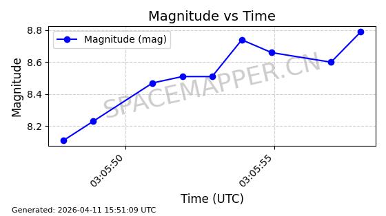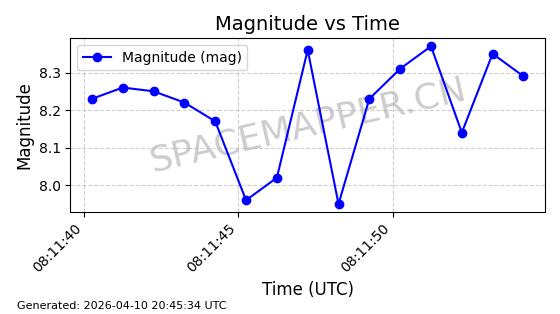 | STARLINK-4020 | 52703 | 52703 | 2022-05-18 同日期轨道 2022-053AZ 同批次轨道 | 在轨 | 95分钟 | 53.2208 | 538.683 | 540.853 | 0.0001567 | 2026-04-10 00:08:58 | ||