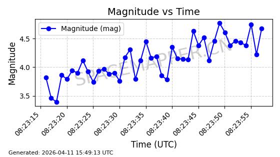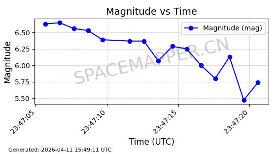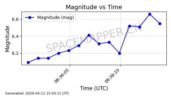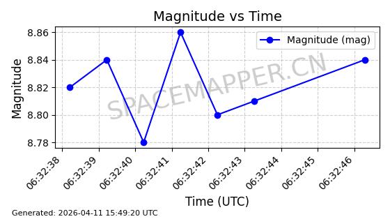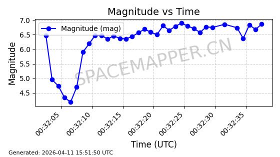 | STARLINK-4028 | 52677 | 52677 | 2022-05-18 同日期轨道 2022-053X 同批次轨道 | 已陨落 | 88分钟 | 53.2050 | 146.826 | 155.53 | 0.0006665 | 2025-08-11 03:49:37 | ||