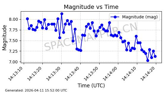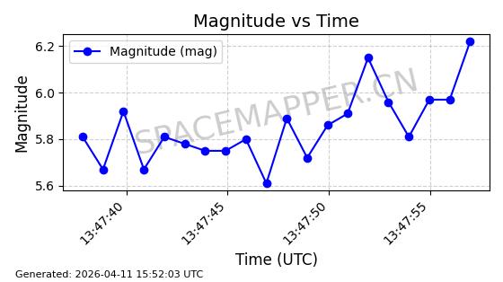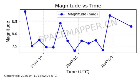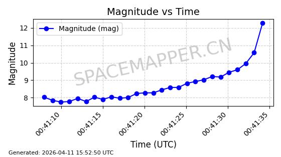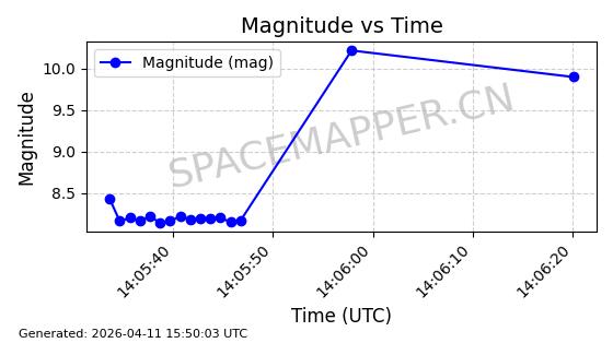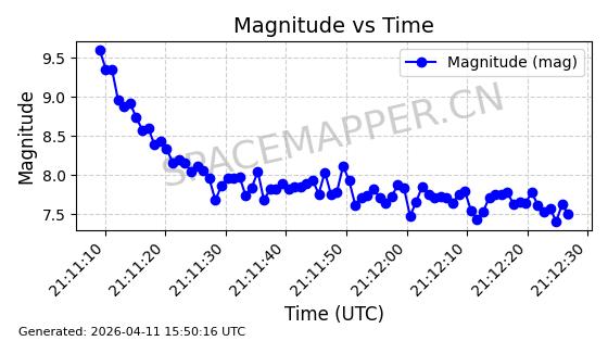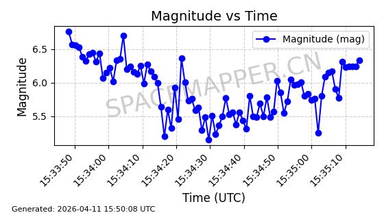 | STARLINK-4026 | 52600 | 52600 | 2022-05-14 同日期轨道 2022-052C 同批次轨道 | 在轨 | 95分钟 | 53.2145 | 538.774 | 540.614 | 0.0001329 | 2026-04-09 09:28:36 | ||