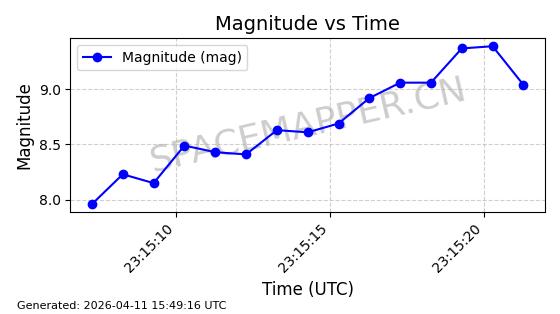 | STARLINK-4094 | 53147 | 53147 | 2022-07-17 同日期轨道 2022-083R 同批次轨道 | 在轨 | 95分钟 | 53.2178 | 538.866 | 540.63 | 0.0001274 | 2026-04-10 00:40:45 | ||