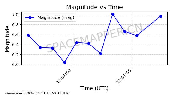| 卫星名称 | AOE ID | NORAD ID | 发射日期 国际编号 | 在轨状态 | 轨道周期 | 轨道倾角 (度) | 近地点 (Km) | 远地点 (Km) | 偏心率 | 更新时间 (UTC) | 近期光变曲线 | 服务 |