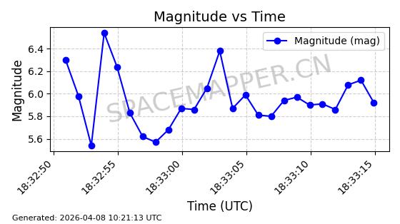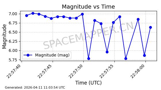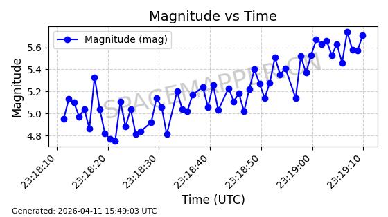 | STARLINK-4054 | 53158 | 53158 | 2022-07-17 同日期轨道 2022-083AC 同批次轨道 | 在轨 | 95分钟 | 53.2185 | 538.774 | 540.822 | 0.0001480 | 2026-04-10 04:35:14 | ||