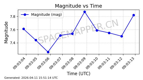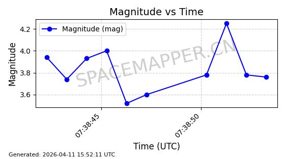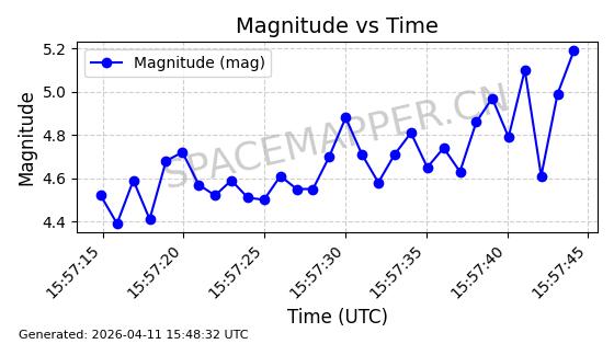 | STARLINK-4005 | 52686 | 52686 | 2022-05-18 同日期轨道 2022-053AG 同批次轨道 | 在轨 | 95分钟 | 53.2178 | 538.844 | 540.672 | 0.0001321 | 2026-04-10 00:46:09 | ||