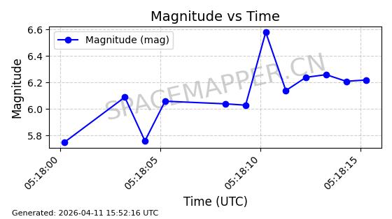 | STARLINK-4011 | 52615 | 52615 | 2022-05-14 同日期轨道 2022-052T 同批次轨道 | 在轨 | 95分钟 | 53.2163 | 538.924 | 540.566 | 0.0001186 | 2026-04-09 09:51:48 | ||
