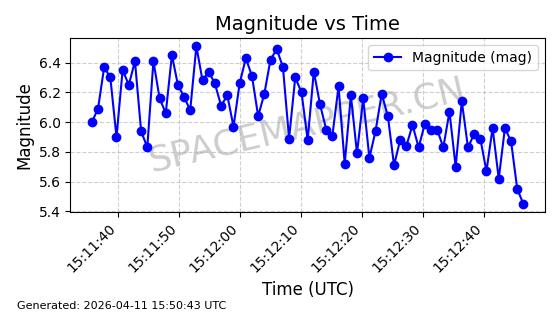 | STARLINK-4050 | 53274 | 53274 | 2022-07-24 同日期轨道 2022-086AJ 同批次轨道 | 在轨 | 95分钟 | 53.2178 | 538.73 | 540.76 | 0.0001466 | 2026-04-10 05:41:29 | ||