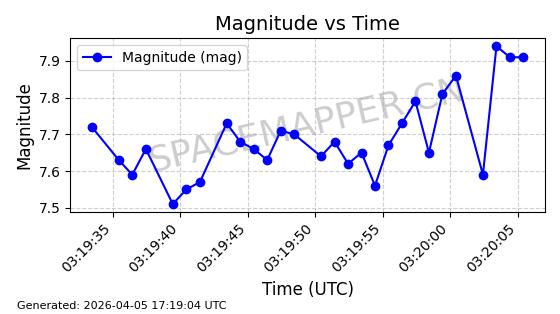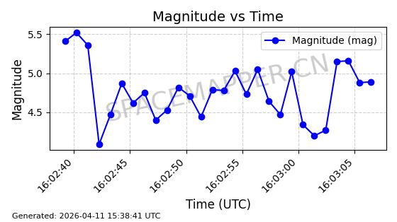 | STARLINK-4121 | 53002 | 53002 | 2022-07-07 同日期轨道 2022-076S 同批次轨道 | 在轨 | 95分钟 | 53.2179 | 538.87 | 540.64 | 0.0001279 | 2026-04-10 06:46:24 | ||