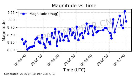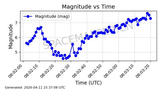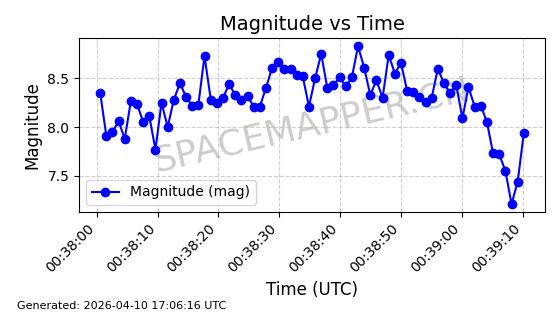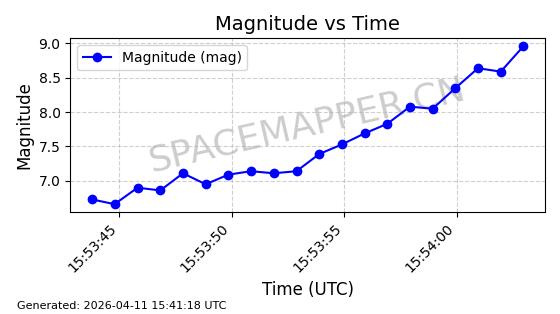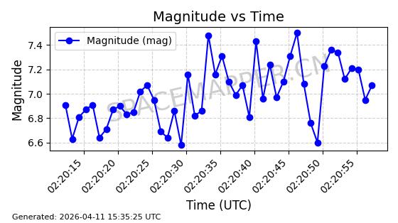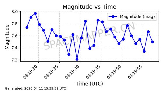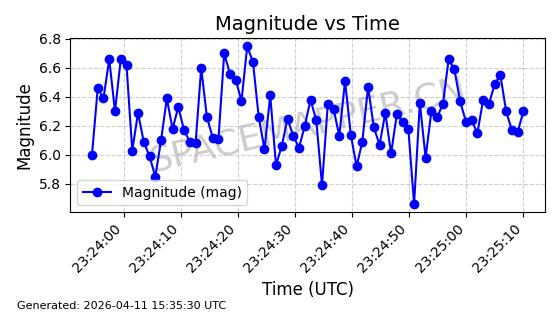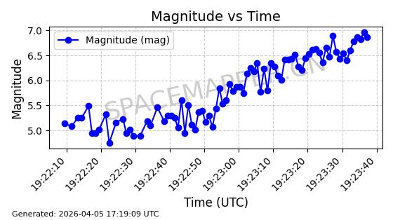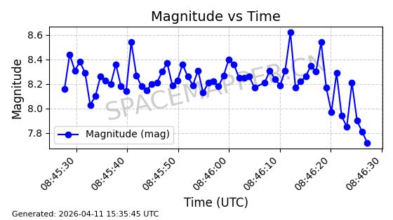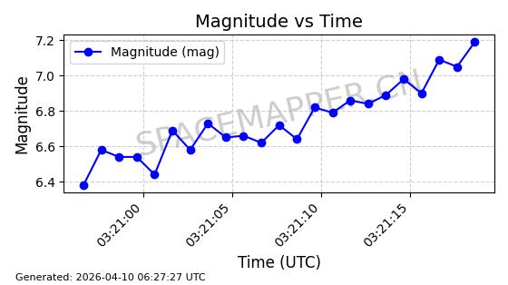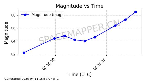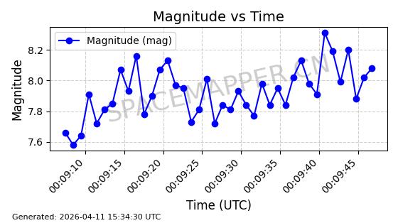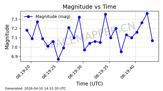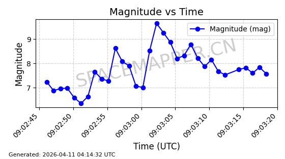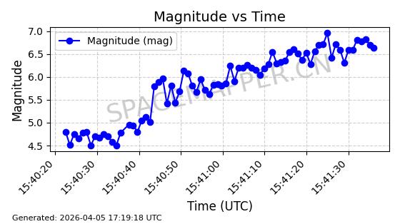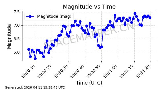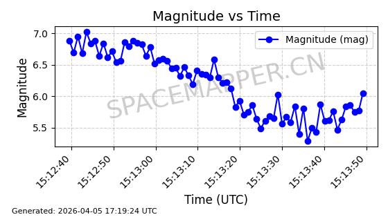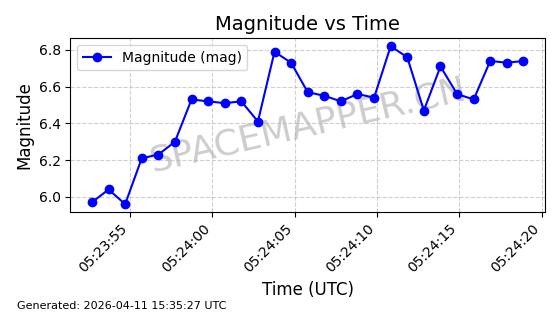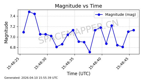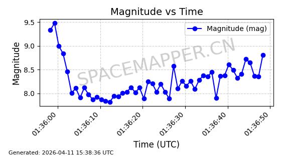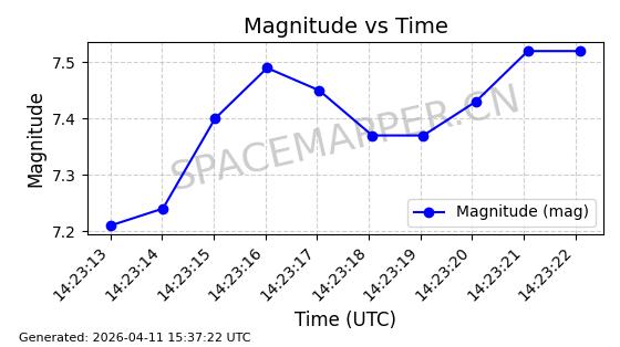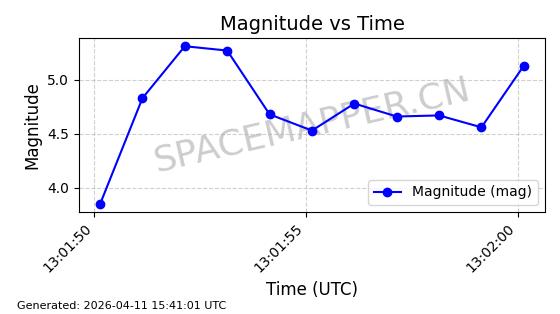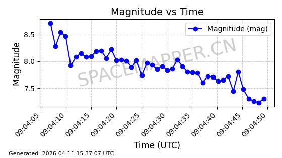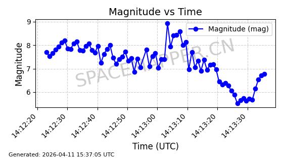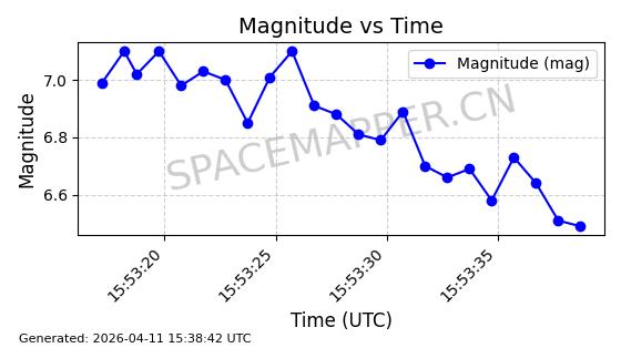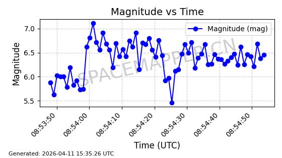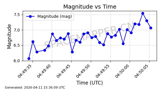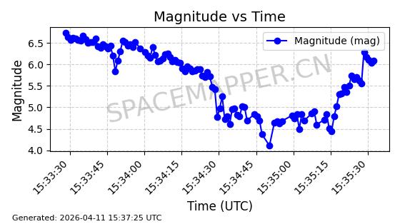 | STARLINK-4149 | 53290 | 53290 | 2022-07-24 同日期轨道 2022-086BA 同批次轨道 | 在轨 | 95分钟 | 53.2180 | 538.783 | 540.713 | 0.0001394 | 2026-04-10 01:16:31 | ||