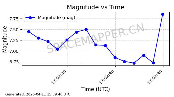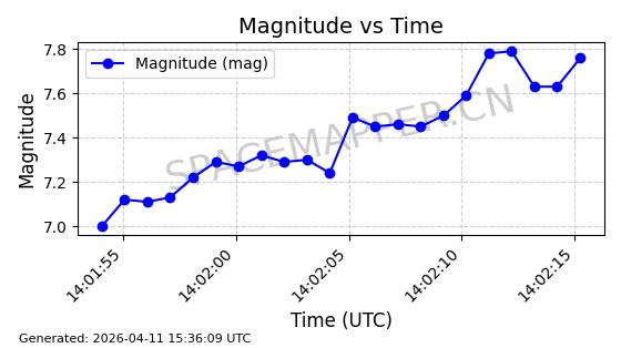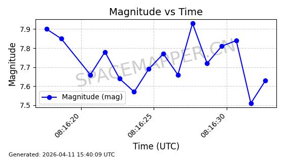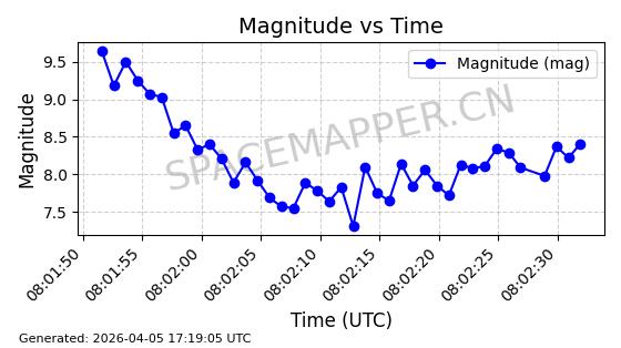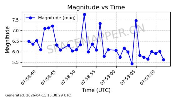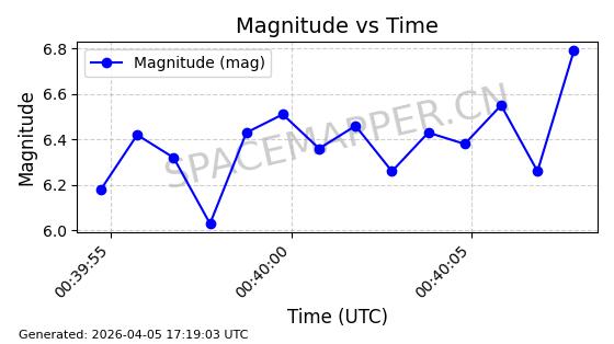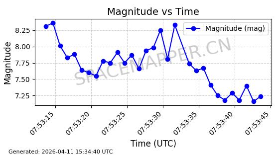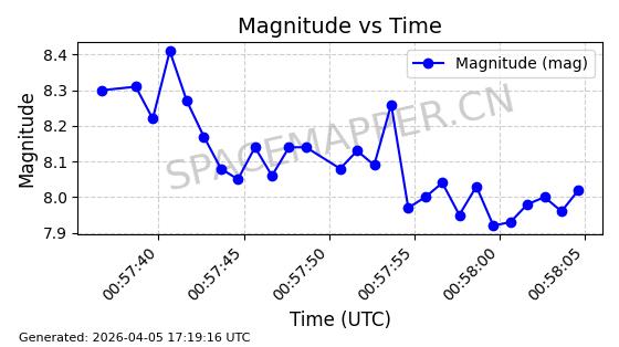 | STARLINK-4118 | 53538 | 53538 | 2022-08-19 同日期轨道 2022-101M 同批次轨道 | 已陨落 | 87分钟 | 53.1974 | 148.321 | 150.775 | 0.0001879 | 2026-02-07 19:23:26 | ||