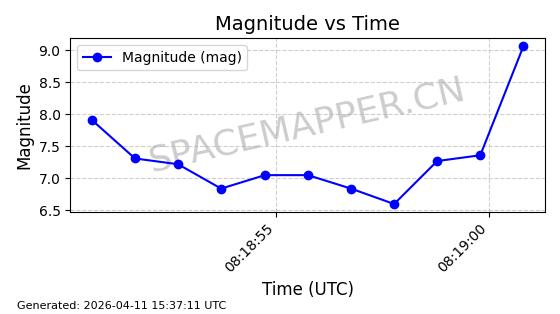 | STARLINK-4153 | 53037 | 53037 | 2022-07-07 同日期轨道 2022-076BD 同批次轨道 | 在轨 | 95分钟 | 53.2183 | 538.905 | 540.557 | 0.0001194 | 2026-04-09 19:25:27 | ||