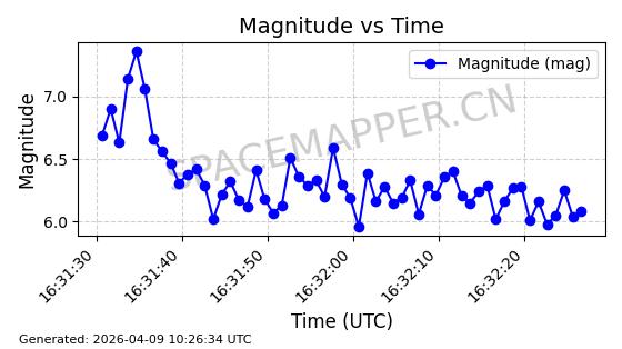 | STARLINK-4209 | 52855 | 52855 | 2022-06-17 同日期轨道 2022-062AB 同批次轨道 | 在轨 | 95分钟 | 53.2158 | 538.807 | 540.703 | 0.0001369 | 2026-04-09 16:31:54 | ||