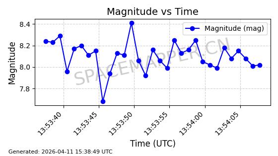 | STARLINK-4141 | 53138 | 53138 | 2022-07-17 同日期轨道 2022-083G 同批次轨道 | 在轨 | 95分钟 | 53.2185 | 538.697 | 540.763 | 0.0001493 | 2026-04-10 04:47:51 | ||