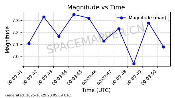 | STARLINK-1247 | 45236 | 45236 | 2020-02-17 同日期轨道 2020-012BL 同批次轨道 | 已陨落 | 88分钟 | 53.0261 | 158.409 | 164.931 | 0.0004985 | 2025-10-07 22:53:34 | ||