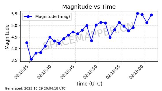 | STARLINK-1193 | 45100 | 45100 | 2020-01-29 同日期轨道 2020-006BJ 同批次轨道 | 在轨 | 96分钟 | 53.0544 | 546.245 | 548.193 | 0.0001406 | 2025-10-28 13:08:19 | ||