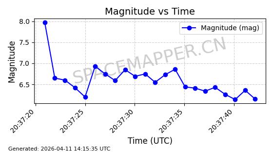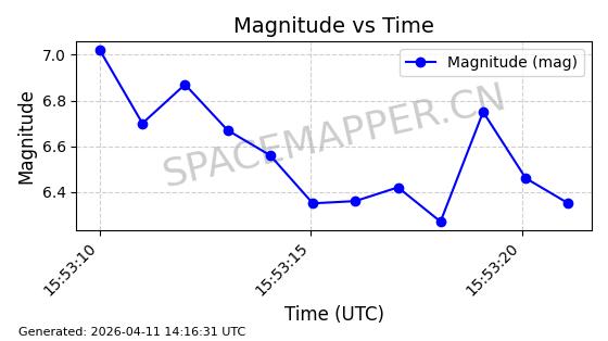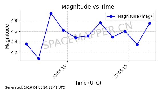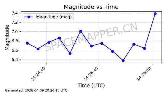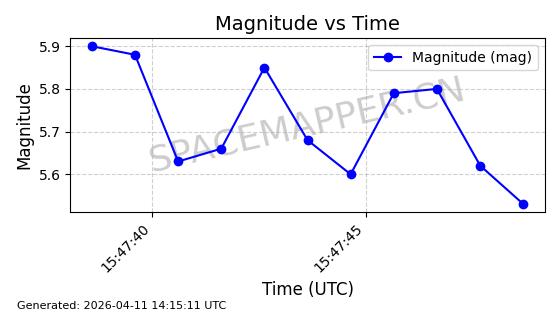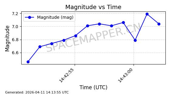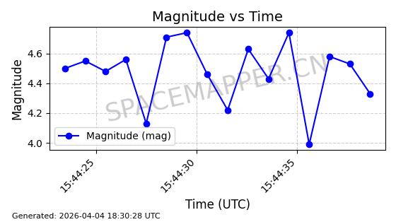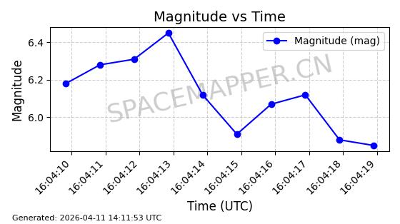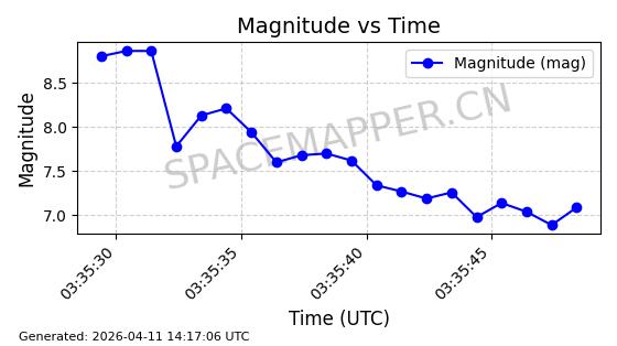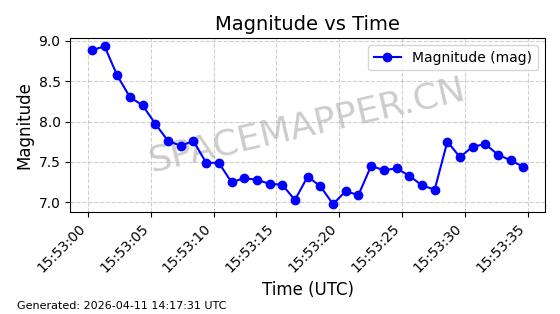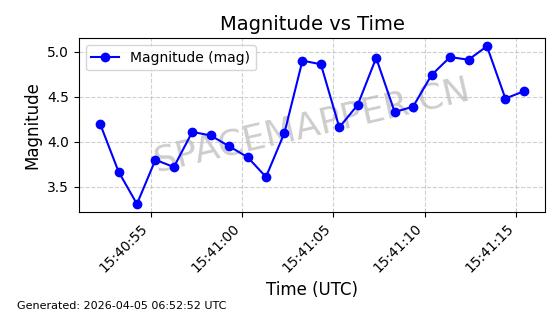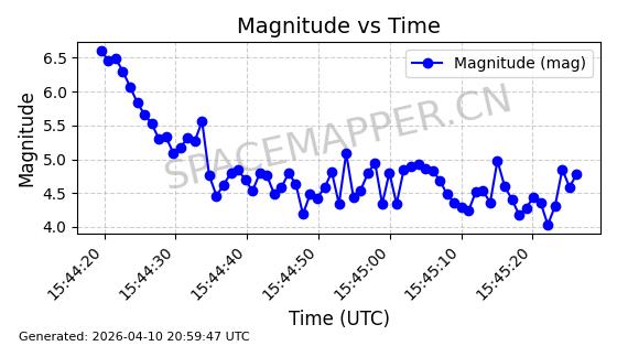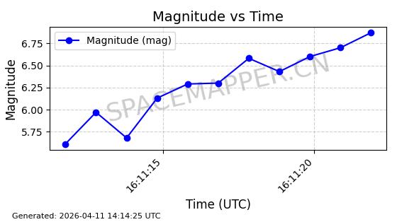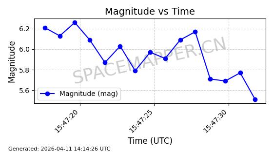 | STARLINK-4461 | 53503 | 53503 | 2022-08-12 同日期轨道 2022-099AQ 同批次轨道 | 已陨落 | 88分钟 | 97.6231 | 148.981 | 161.737 | 0.0009762 | 2026-04-04 06:20:56 | ||