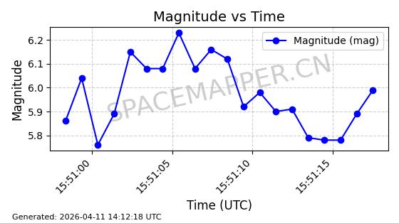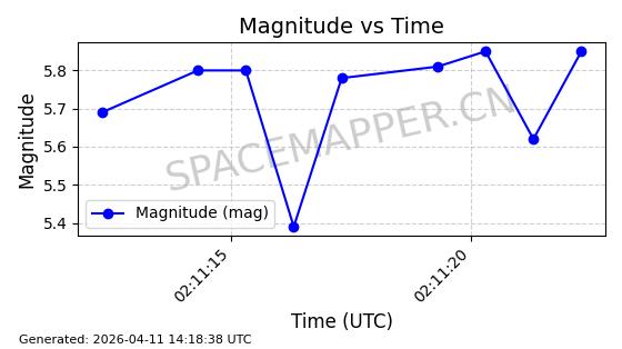 | 卫星名称 | AOE ID | NORAD ID | 发射日期 国际编号 | 在轨状态 | 轨道周期 | 轨道倾角 (度) | 近地点 (Km) | 远地点 (Km) | 偏心率 | 更新时间 (UTC) | 近期光变曲线 | 服务 |