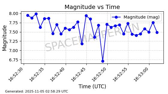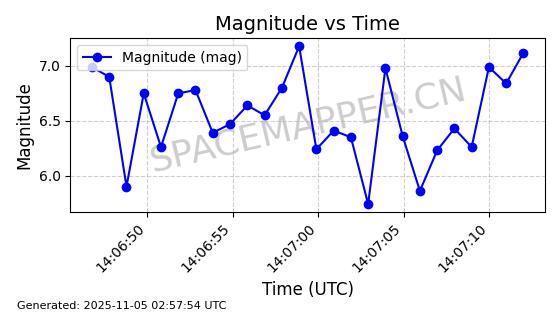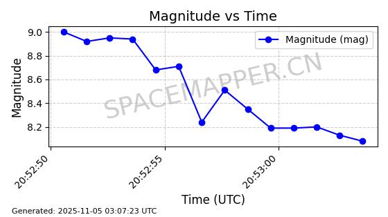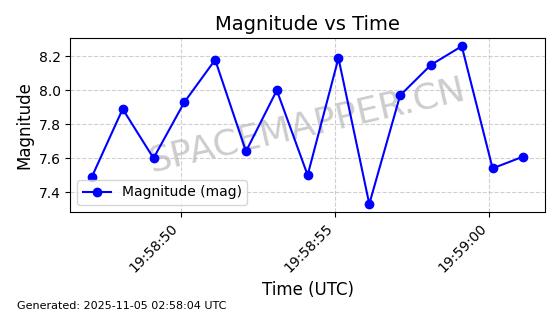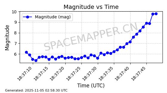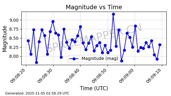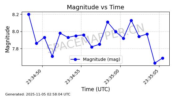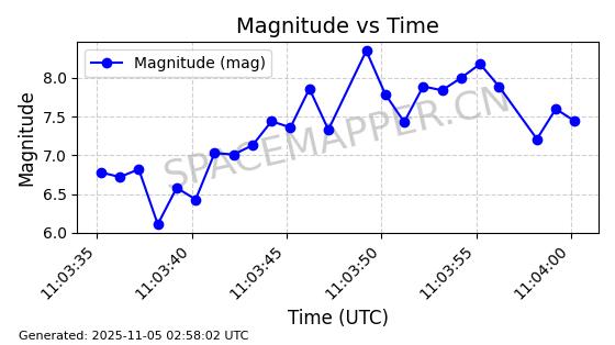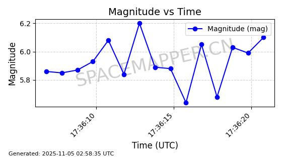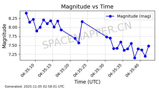 在轨 95分钟 53.2173 538.884 540.636 0.0001265 2025-11-04