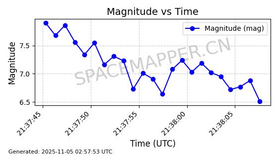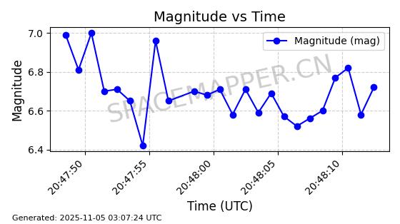 在轨 95分钟 53.2167 538.778 540.726 0.0001407 2025-11-04