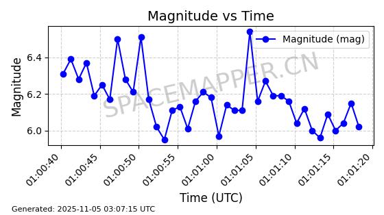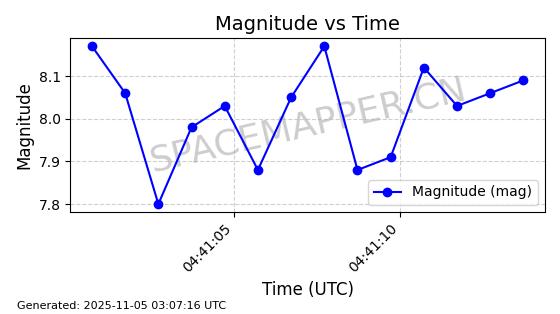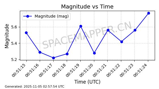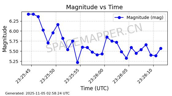 在轨 95分钟 53.2155 538.801 540.717 0.0001384 2025-11-04