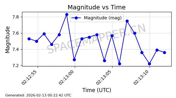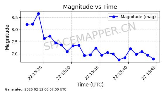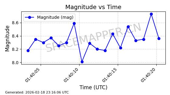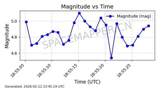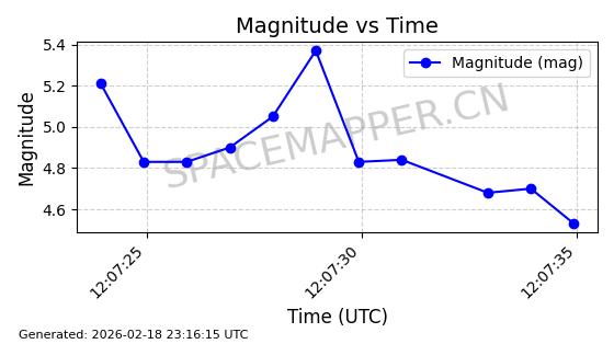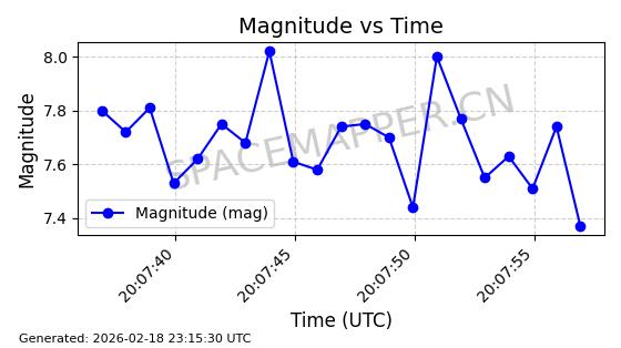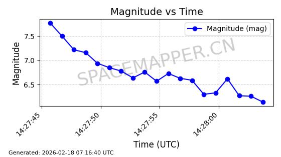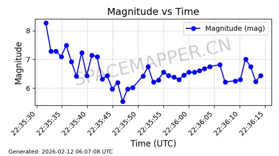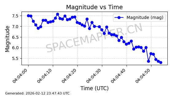 | STARLINK-30707 | 57949 | 57949 | 2023-09-25 同日期轨道 2023-148Q 同批次轨道 | 在轨 | 94分钟 | 53.1596 | 474.425 | 476.283 | 0.0001355 | 2026-02-18 04:19:51 | ||