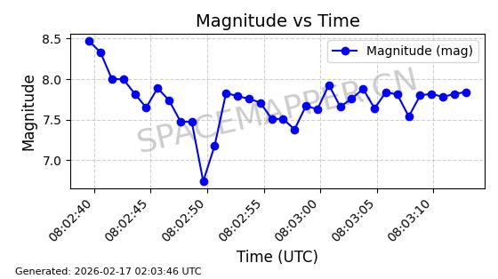 | STARLINK-30700 | 57953 | 57953 | 2023-09-25 同日期轨道 2023-148U 同批次轨道 | 在轨 | 94分钟 | 53.1601 | 474.433 | 476.039 | 0.0001171 | 2026-02-17 16:04:10 | ||