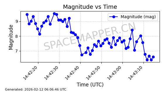 | STARLINK-30459 | 57927 | 57927 | 2023-09-24 同日期轨道 2023-147Q 同批次轨道 | 已陨落 | 88分钟 | 42.9718 | 175.945 | 186.733 | 0.0008223 | 2026-01-15 13:28:17 | ||