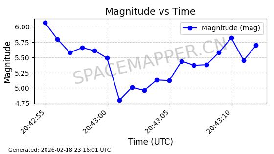 | STARLINK-30483 | 57914 | 57914 | 2023-09-24 同日期轨道 2023-147B 同批次轨道 | 在轨 | 94分钟 | 43.0009 | 482.35 | 483.806 | 0.0001061 | 2026-02-18 00:54:33 | ||