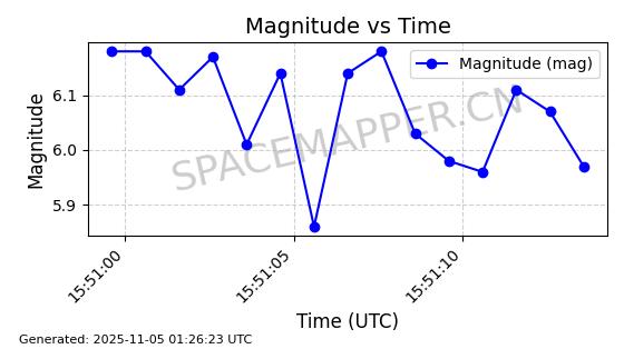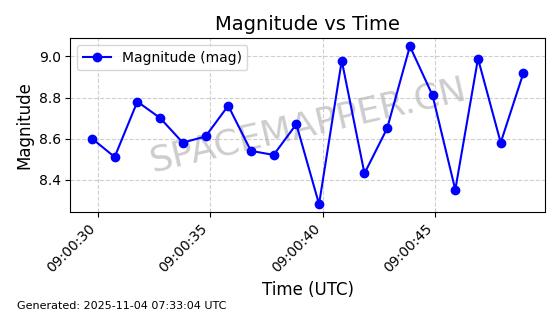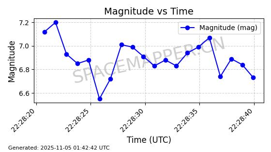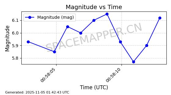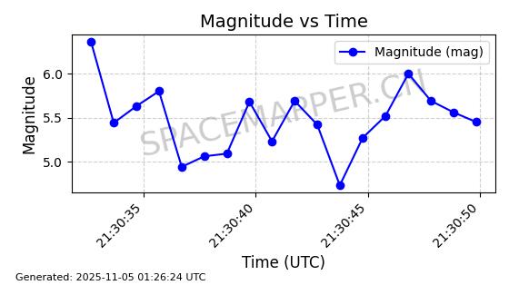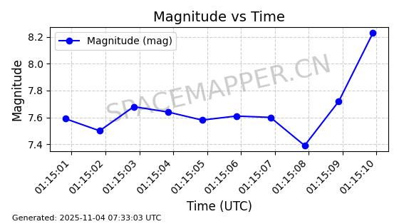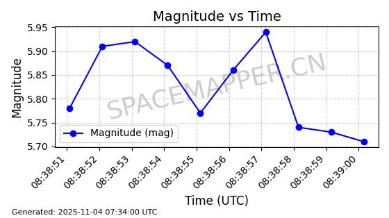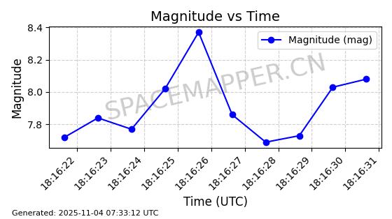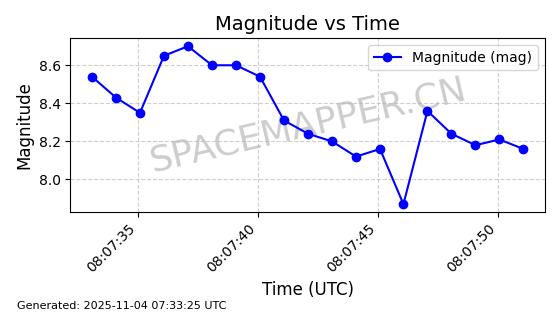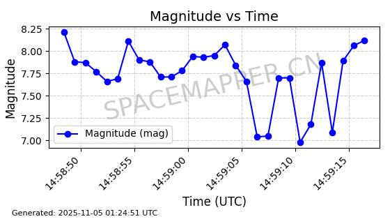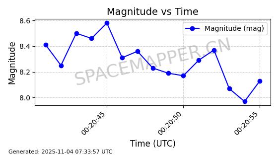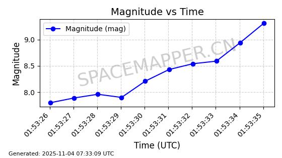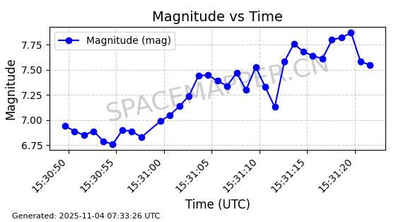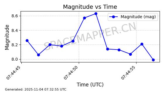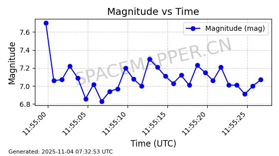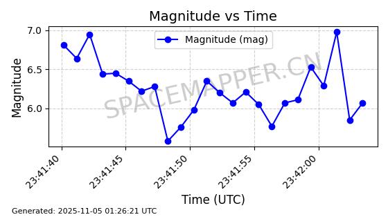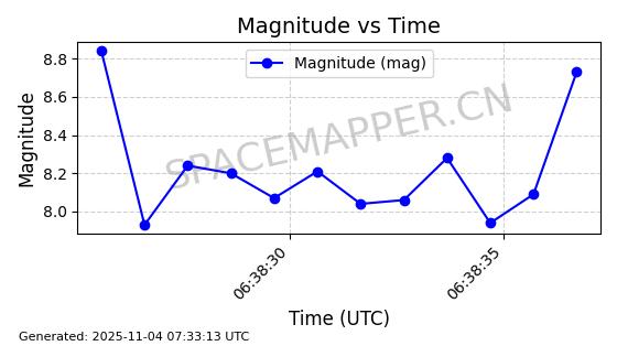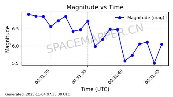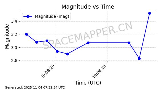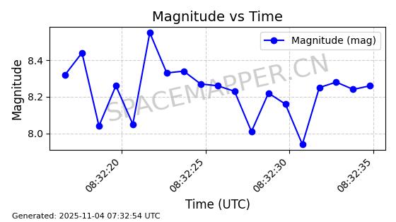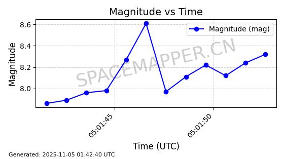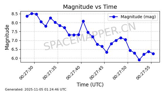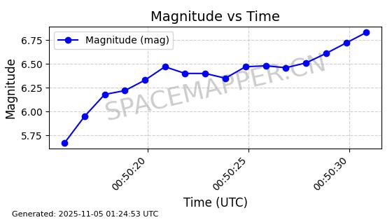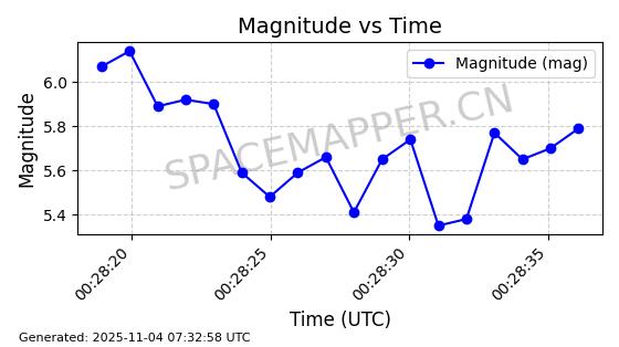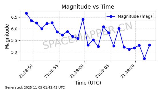 | STARLINK-4586 | 53636 | 53636 | 2022-08-28 同日期轨道 2022-104BA 同批次轨道 | 在轨 | 95分钟 | 53.2158 | 538.581 | 540.553 | 0.0001424 | 2025-11-04 01:43:00 | ||