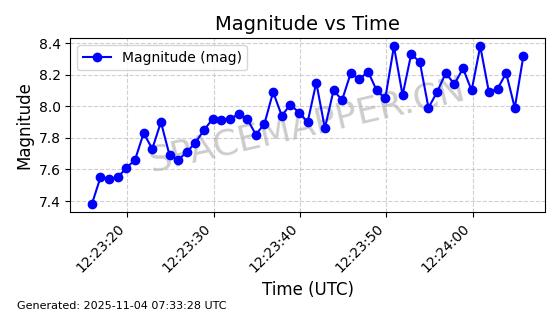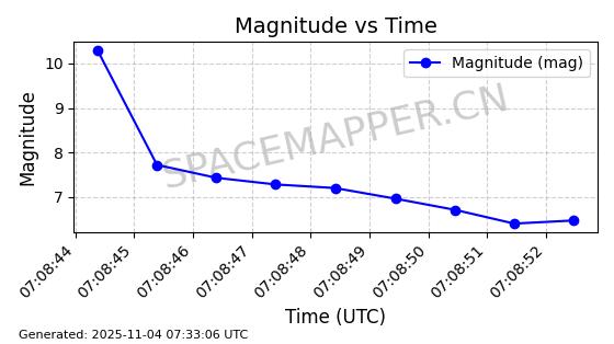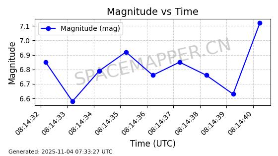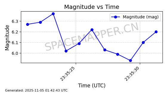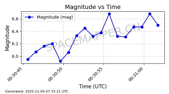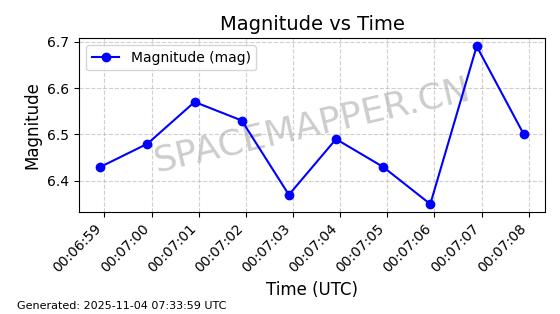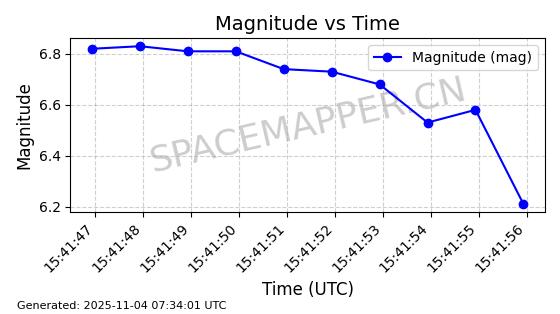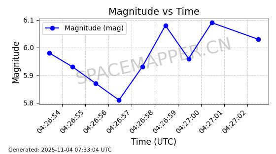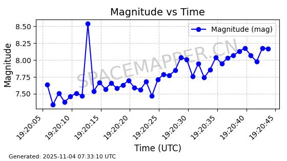 | STARLINK-4635 | 53966 | 53966 | 2022-10-05 同日期轨道 2022-125C 同批次轨道 | 在轨 | 95分钟 | 53.2162 | 538.862 | 540.644 | 0.0001287 | 2025-11-04 01:11:13 | ||