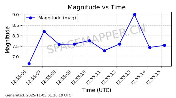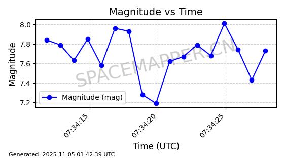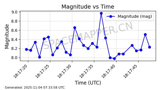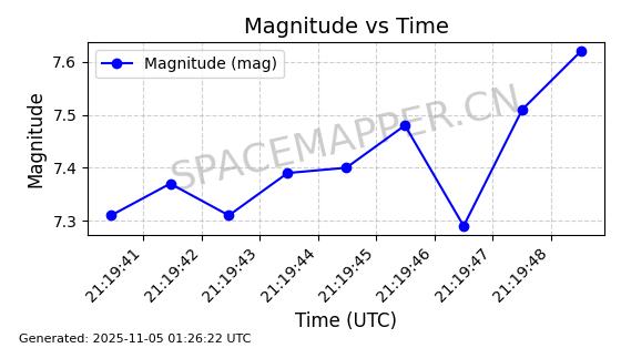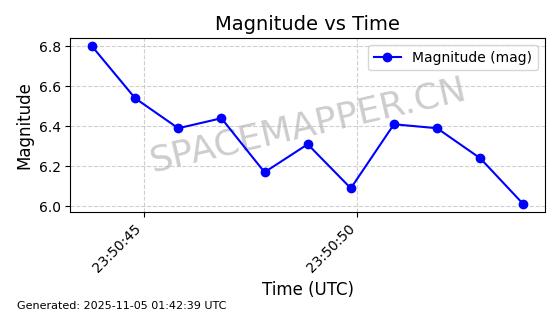 | STARLINK-4698 | 53713 | 53713 | 2022-09-05 同日期轨道 2022-107P 同批次轨道 | 已陨落 | 88分钟 | 53.1744 | 169.644 | 179.66 | 0.0007642 | 2025-08-30 11:02:06 | ||