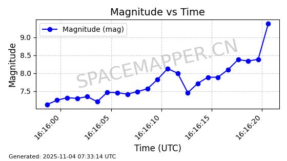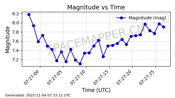 | STARLINK-4639 | 53971 | 53971 | 2022-10-05 同日期轨道 2022-125H 同批次轨道 | 在轨 | 93分钟 | 53.2160 | 417.219 | 420.233 | 0.0002216 | 2025-11-03 22:56:13 | ||