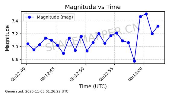| STARLINK-4614 | 53741 | 53741 | 2022-09-05 同日期轨道 2022-107AT 同批次轨道 | 已陨落 | 88分钟 | 53.2029 | 173.248 | 184.642 | 0.0008688 | 2025-08-02 13:59:14 | ||