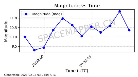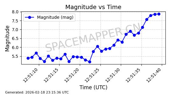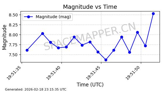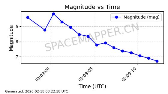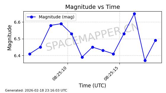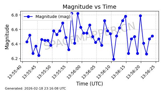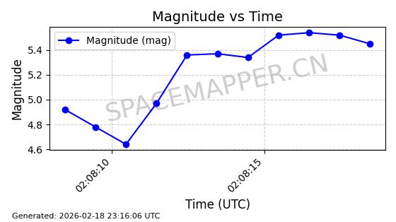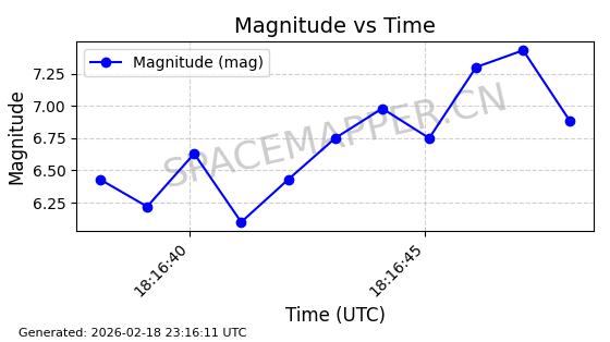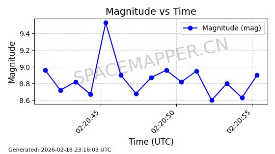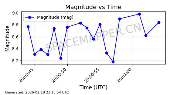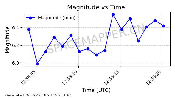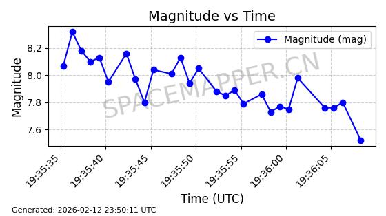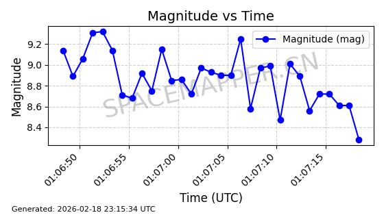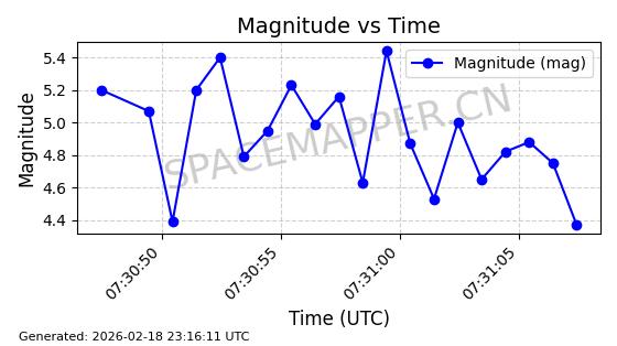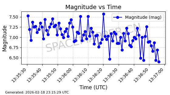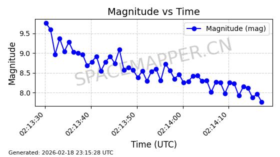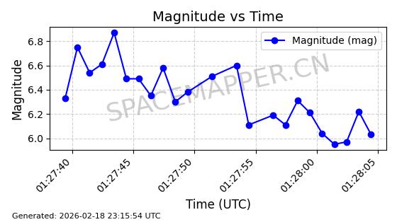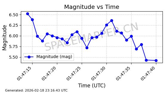 | STARLINK-30542 | 58041 | 58041 | 2023-10-09 同日期轨道 2023-156P 同批次轨道 | 在轨 | 94分钟 | 53.1607 | 474.833 | 475.849 | 0.0000741 | 2026-02-18 07:30:33 | ||