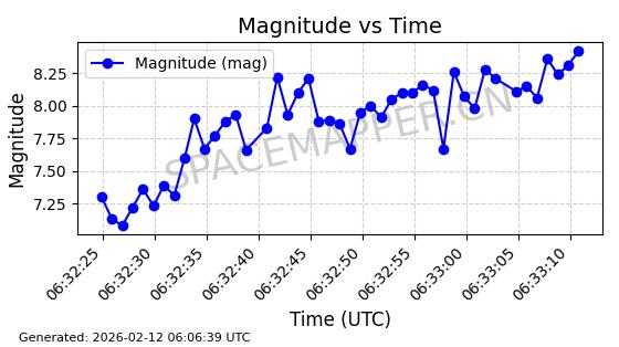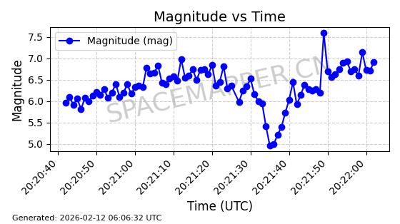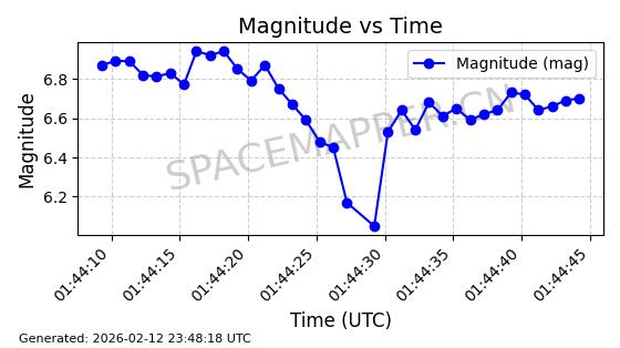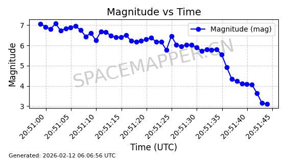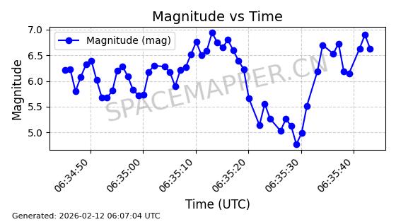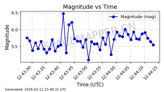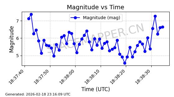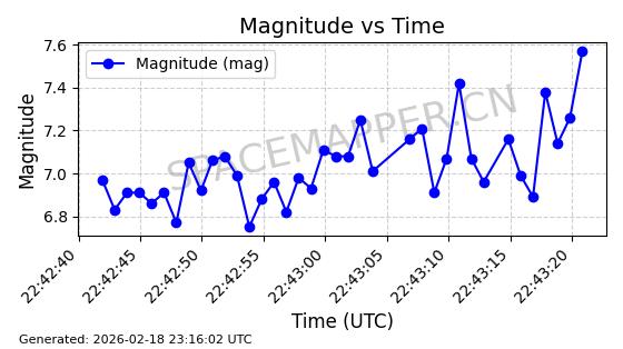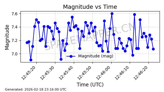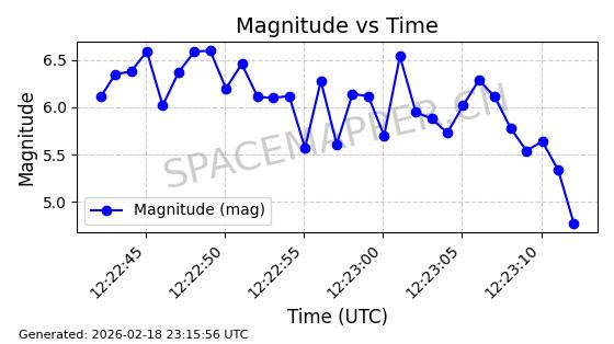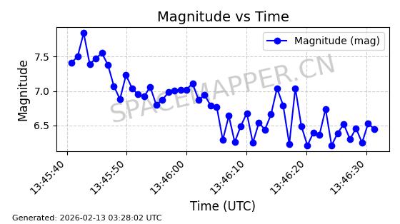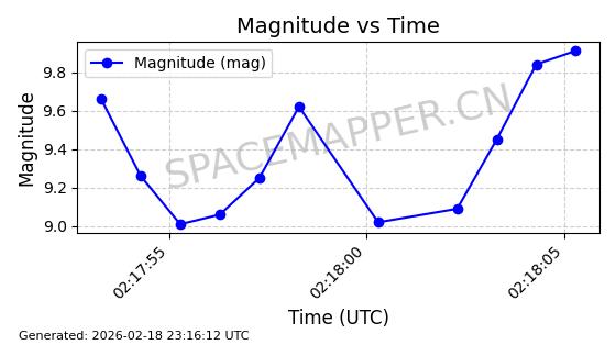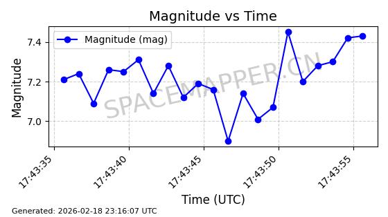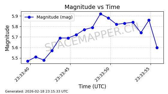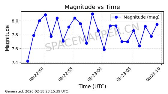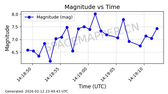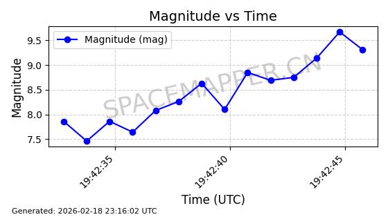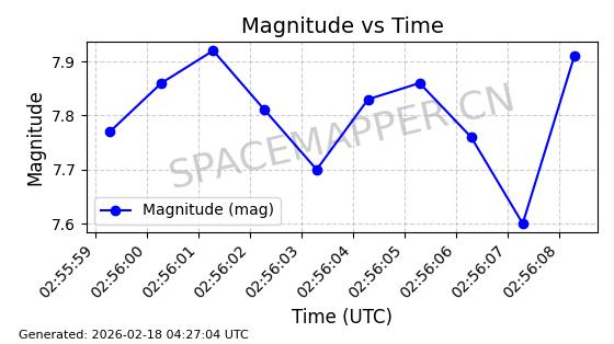 | STARLINK-30542 | 58041 | 58041 | 2023-10-09 同日期轨道 2023-156P 同批次轨道 | 在轨 | 94分钟 | 53.1607 | 474.833 | 475.849 | 0.0000741 | 2026-02-18 07:30:33 | ||