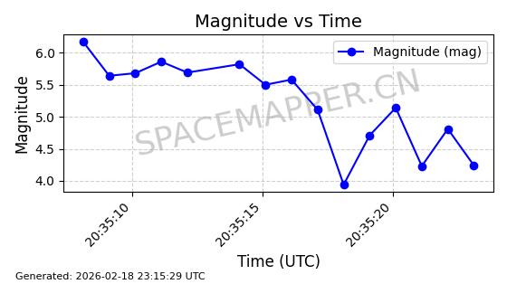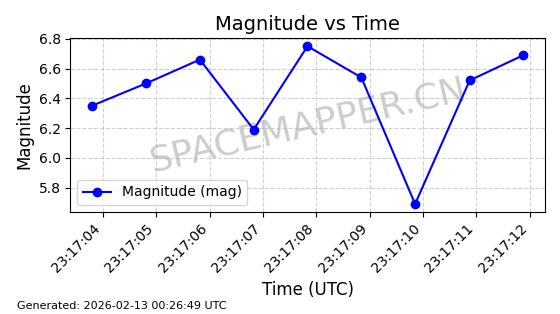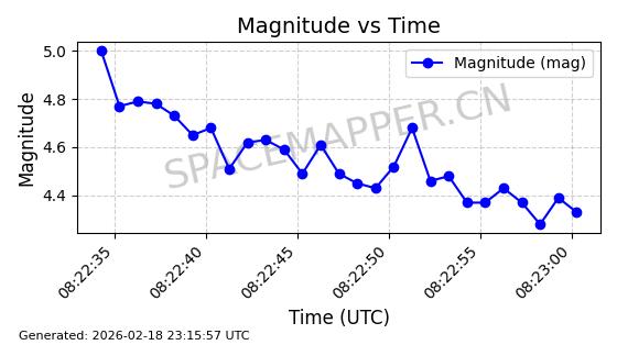 | STARLINK-30580 | 58115 | 58115 | 2023-10-21 同日期轨道 2023-161U 同批次轨道 | 在轨 | 94分钟 | 53.1577 | 474.393 | 476.137 | 0.0001271 | 2026-02-17 22:59:28 | ||